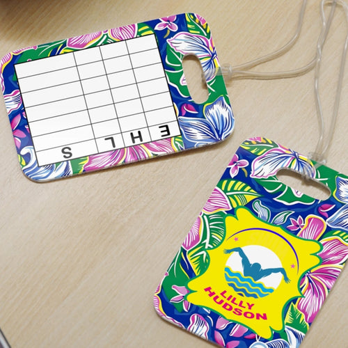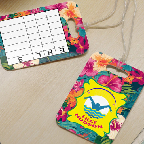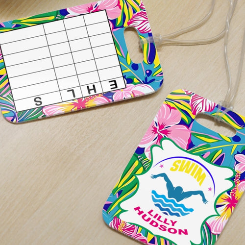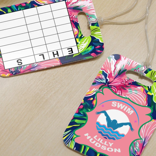 Personalized Lilly 1 Floral swim bag Tags with swim meet heat/ Custom Reusable swim meet heat Tags